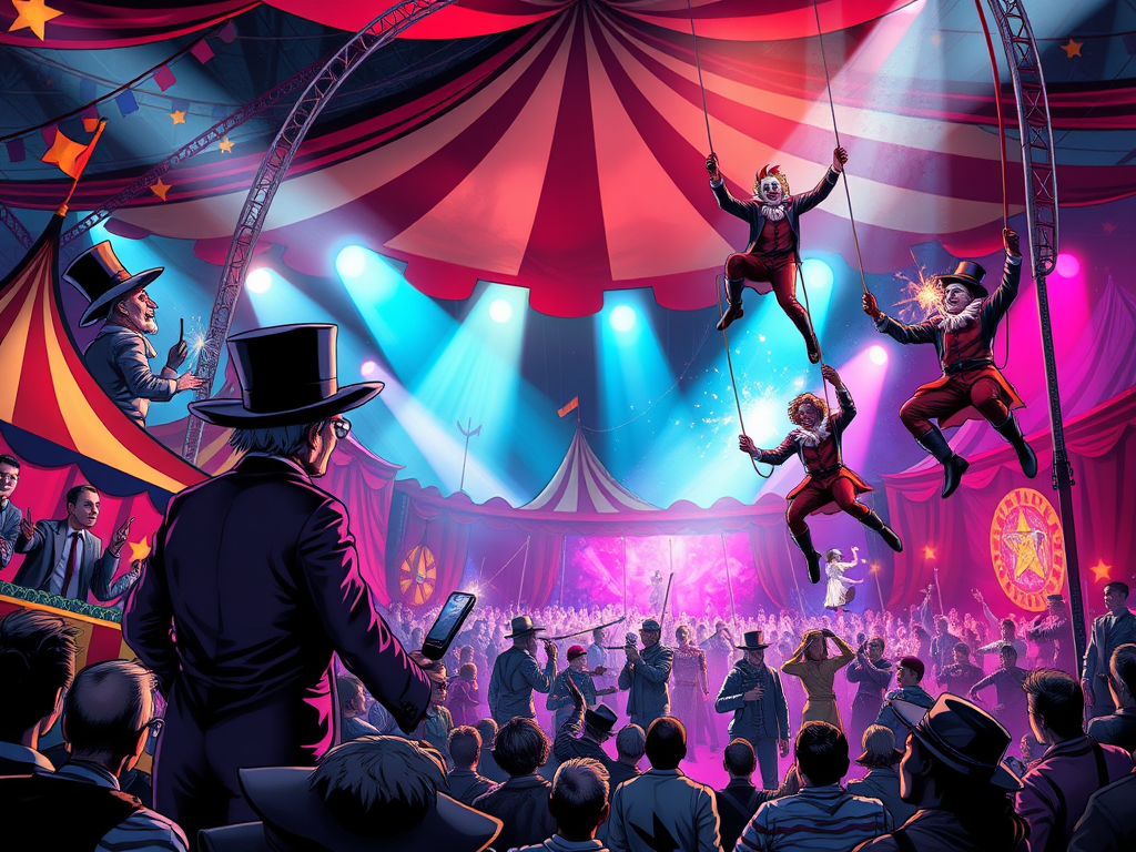 Ethics in the US are pulled by a circus of influences—politics acting like a loud ringmaster, social media as the mischievous clown amplifying outrage, religion and culture as the wise old acrobats, and technology as the daring trapeze artist swinging us into new dilemmas—creating a dynamic, sometimes chaotic system.